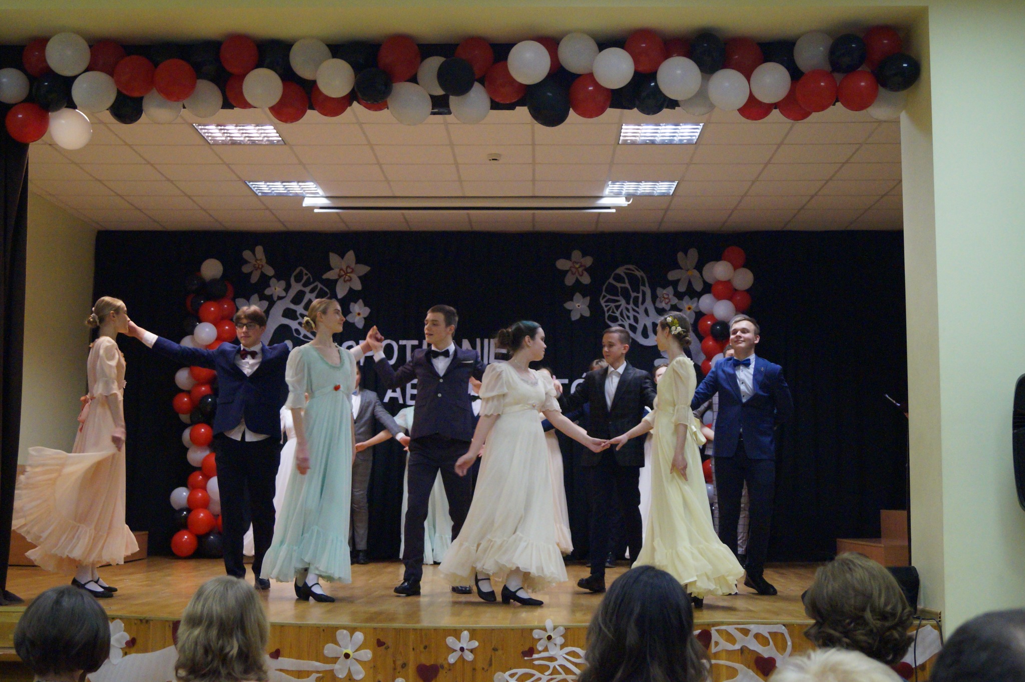 Polonez zagościł na scenie w wykonaniu zespołu PRZYJAŹŃ, a przemówienia gości – absolwentów unosiły się w przestrzeni różnych promocji, którzy z wielkim szacunkiem przywoływali we wspomnieniach życie szkolne, swych wychowawców i nauczycieli oraz ciekawe wydarzenia młodzieńcze. Organizatorzy, pod kierunkiem Wiolety Brodowskiej, dyrektorki gimnazjum, zadbali o każdy szczegół, bowiem to spotkanie miało przybliżyć również wiekową datę założenia szkoły w 1773 roku przez Komisję Edukacji Narodowej, więc ten rok jest rokiem jubileuszowym dla naszej społeczności. Milowymi krokami zbliża się 250 rocznica założenia placówki oświatowej. To było okazją do obranego tematu poprzez naszych uczniów, którzy przybliżyli powojenną rzeczywistość nauczania w szkole, przypomnieli nauczycieli i dyrektorów, pracujących tutaj oraz wyróżniających się uczniów – absolwentów.