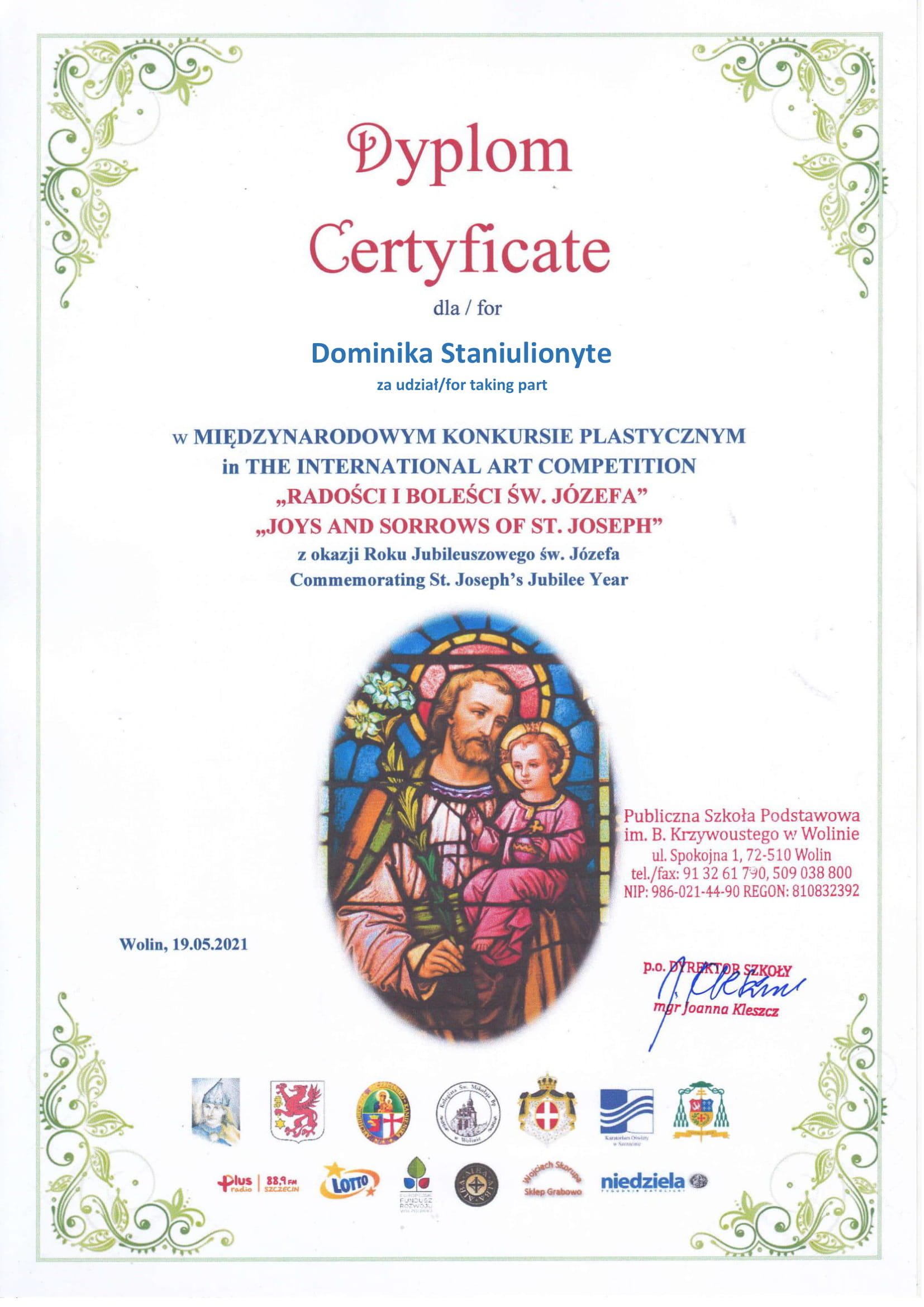 Dalyvavimas tarptautiniame konkurse „Šv. Juozapo džiaugsmas ir nuoskaudos“19 birželio, 20218 rugsėjo, 2021