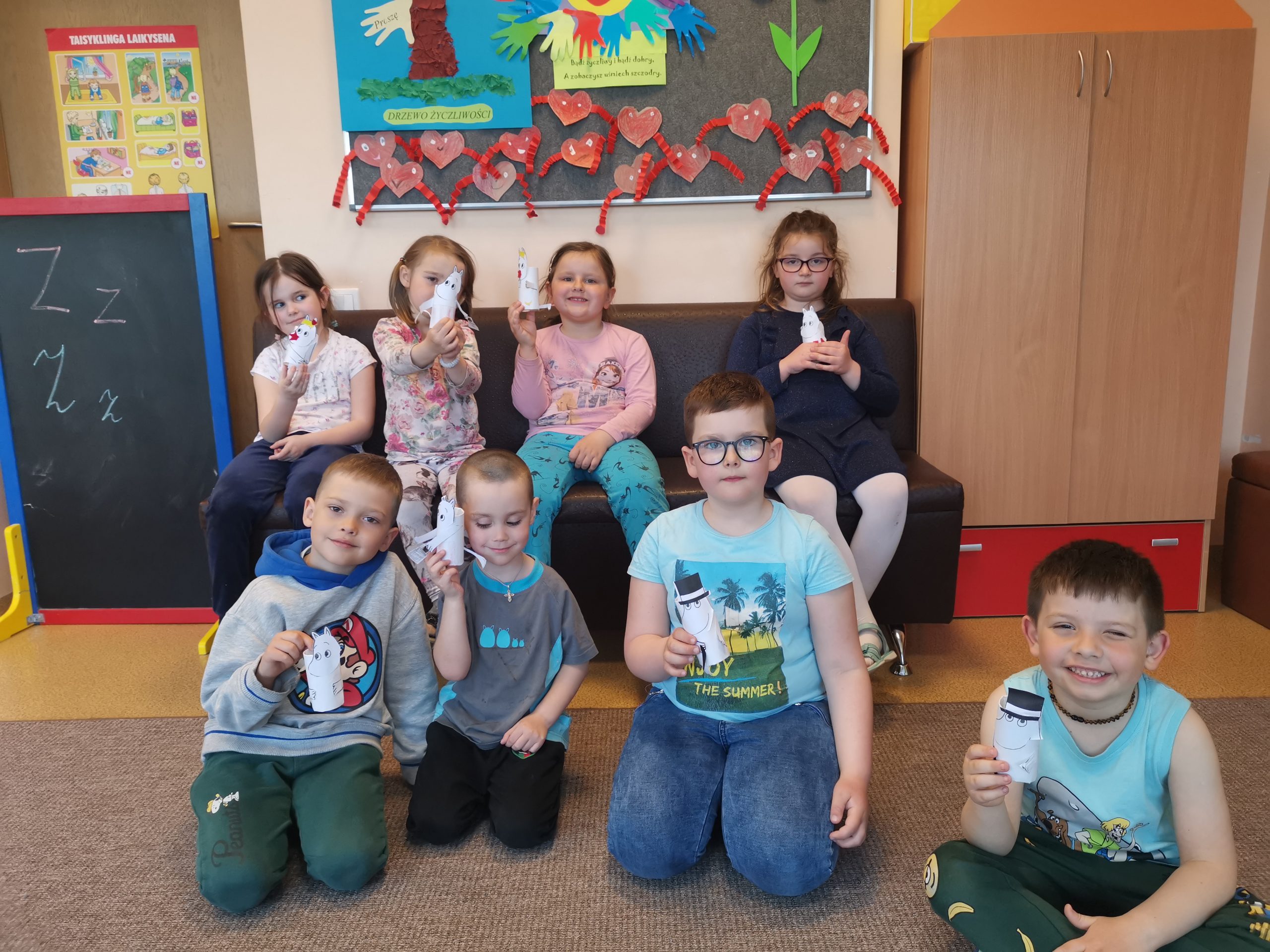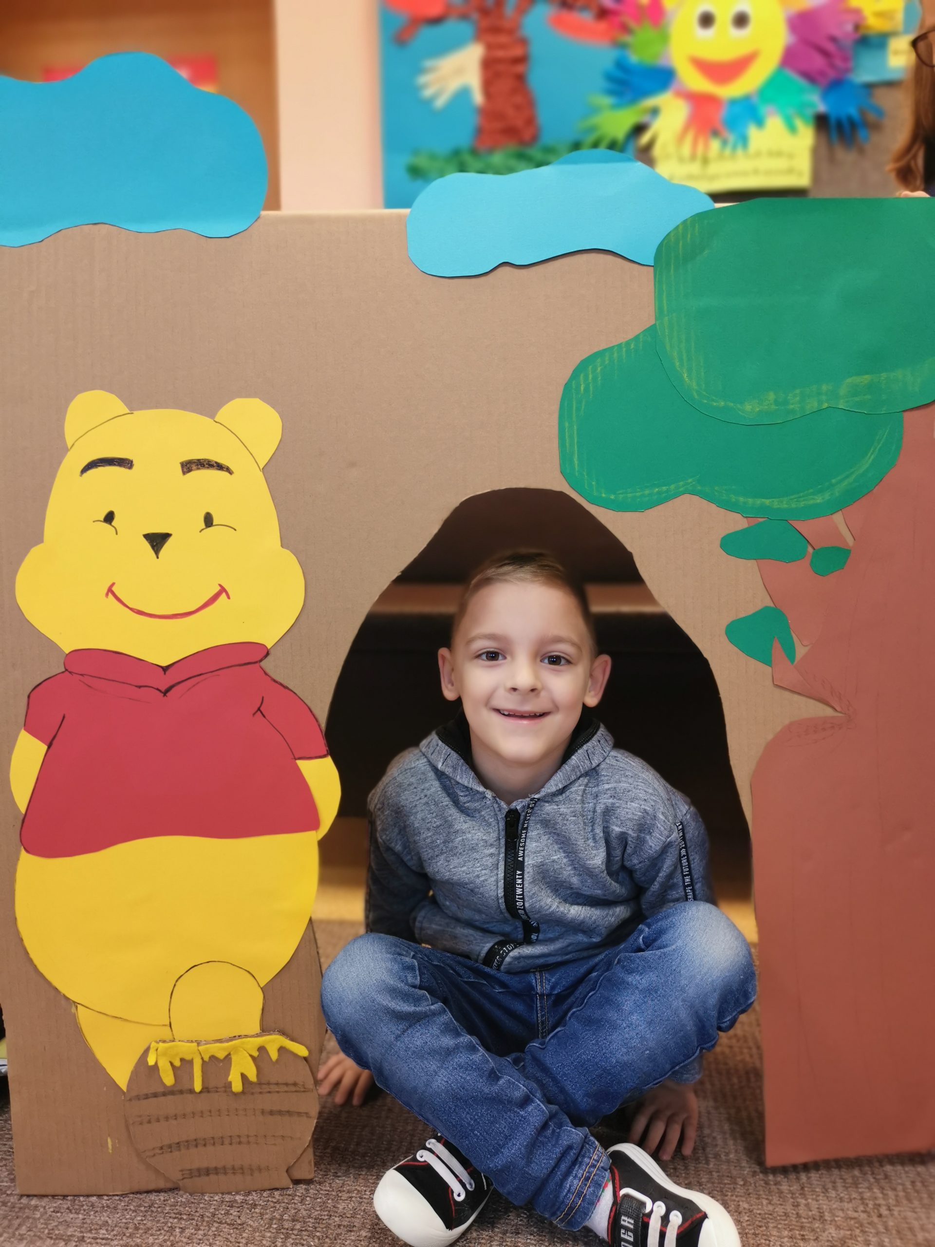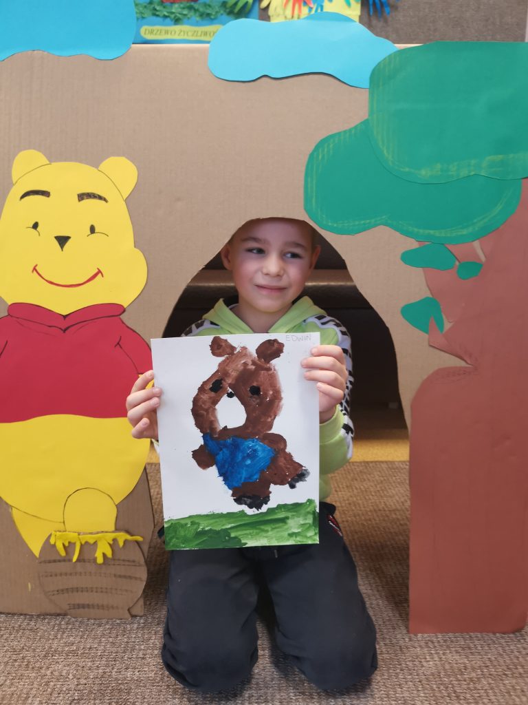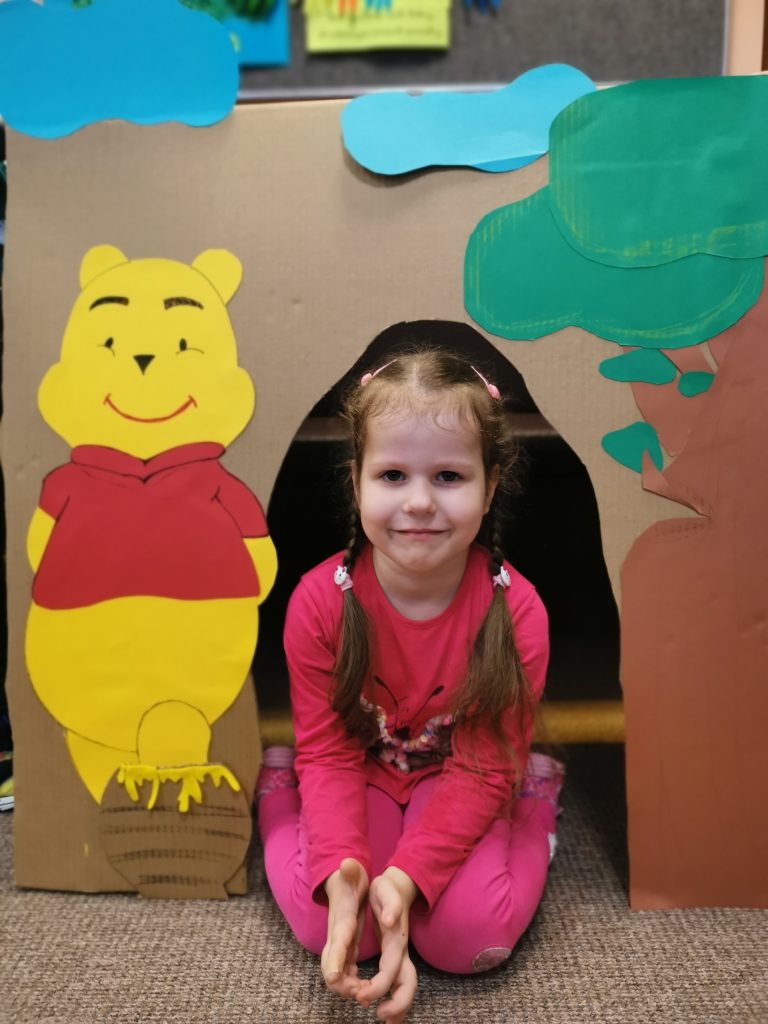 Pirmiausia kartu su vaikais atlikome įžangines projekto užduotis: išsirinkome pasakos draugą – meškiuką, kuris buvo pavadintas Uszatek ir lydėjo mus stebuklingoje kelionėje į pasakų pasaulį. Vaikai išmoko dainuoti projektinę dainą „Stebuklinga pasakų jėga“.