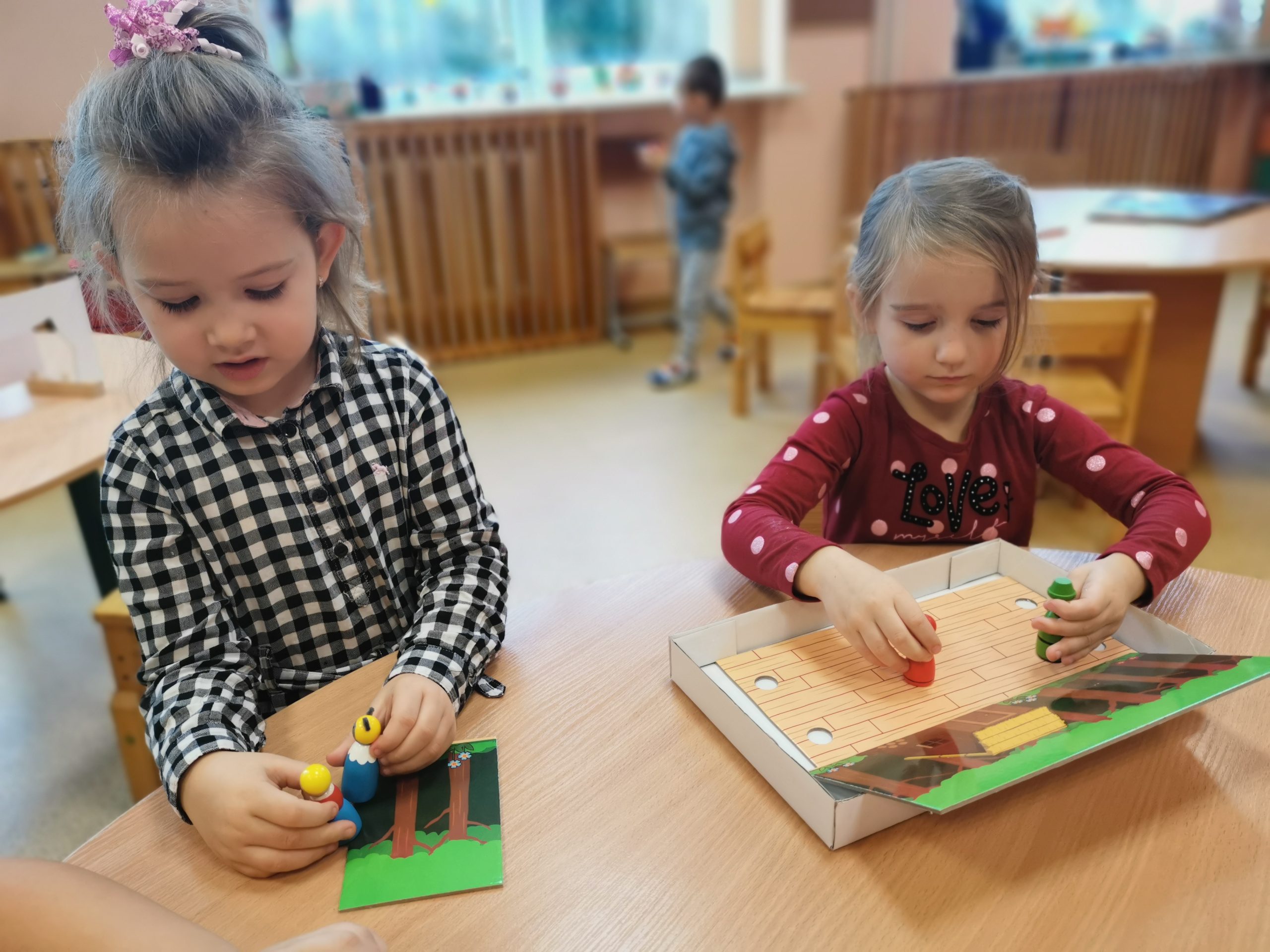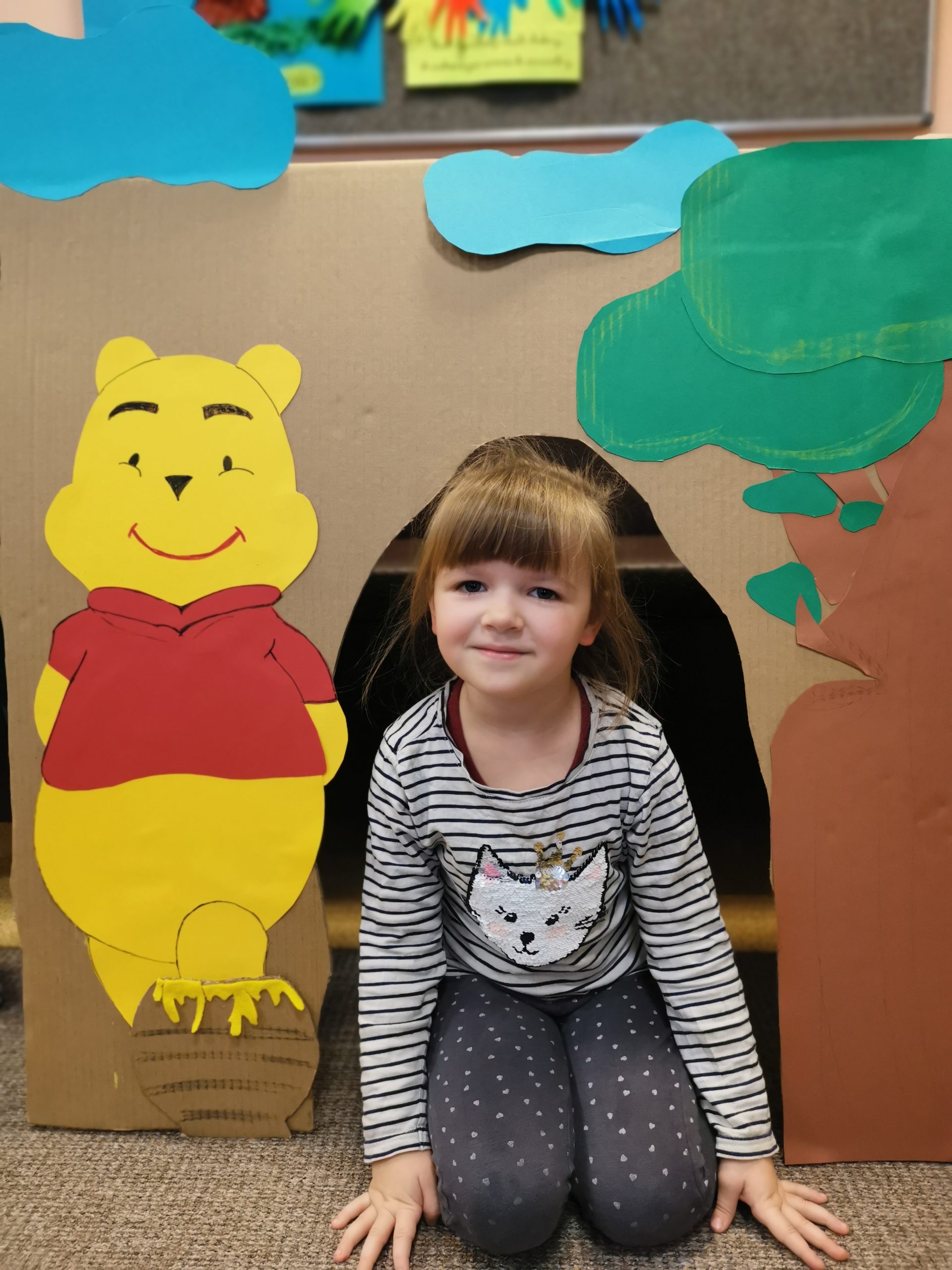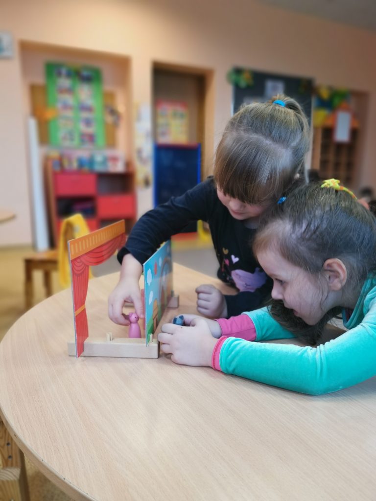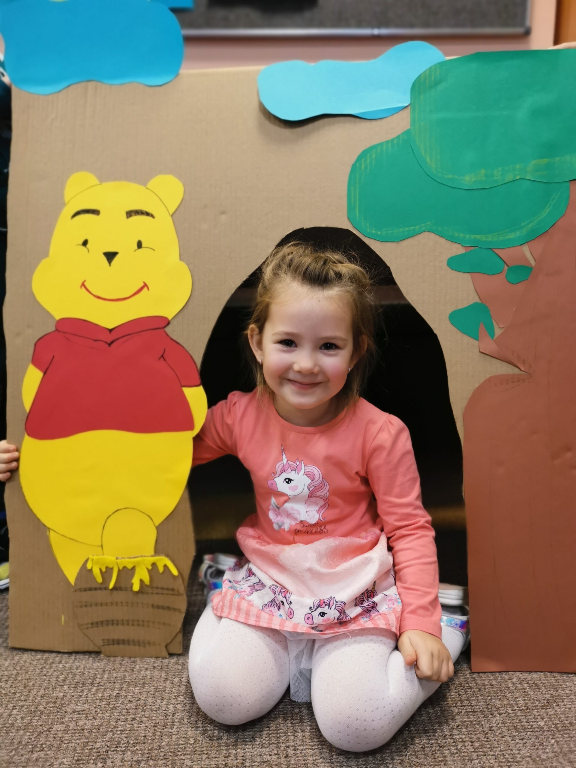 Pirmiausia kartu su vaikais atlikome įžangines projekto užduotis: išsirinkome pasakos draugą – meškiuką, kuris buvo pavadintas Uszatek ir lydėjo mus stebuklingoje kelionėje į pasakų pasaulį. Vaikai išmoko dainuoti projektinę dainą „Stebuklinga pasakų jėga“.