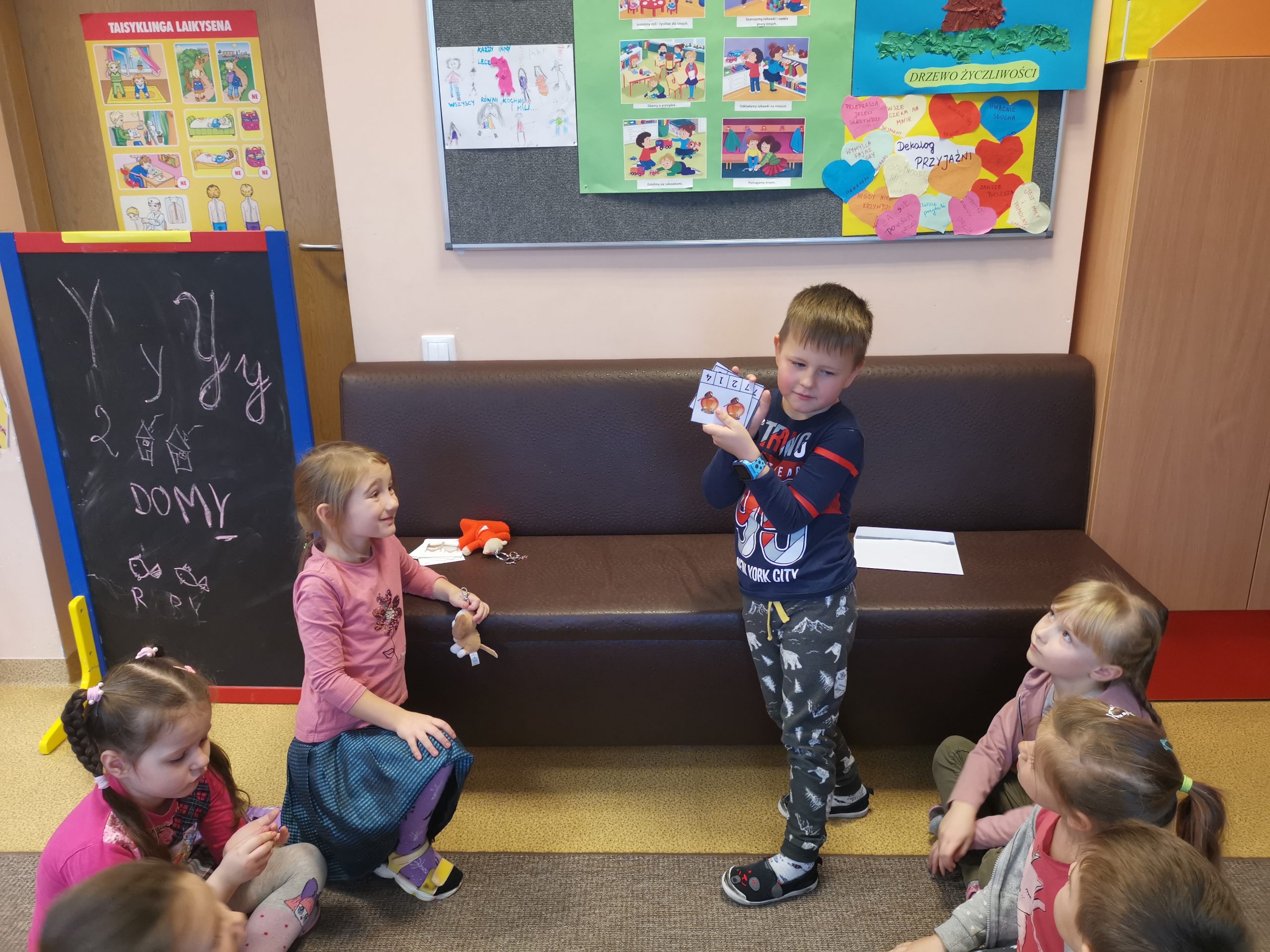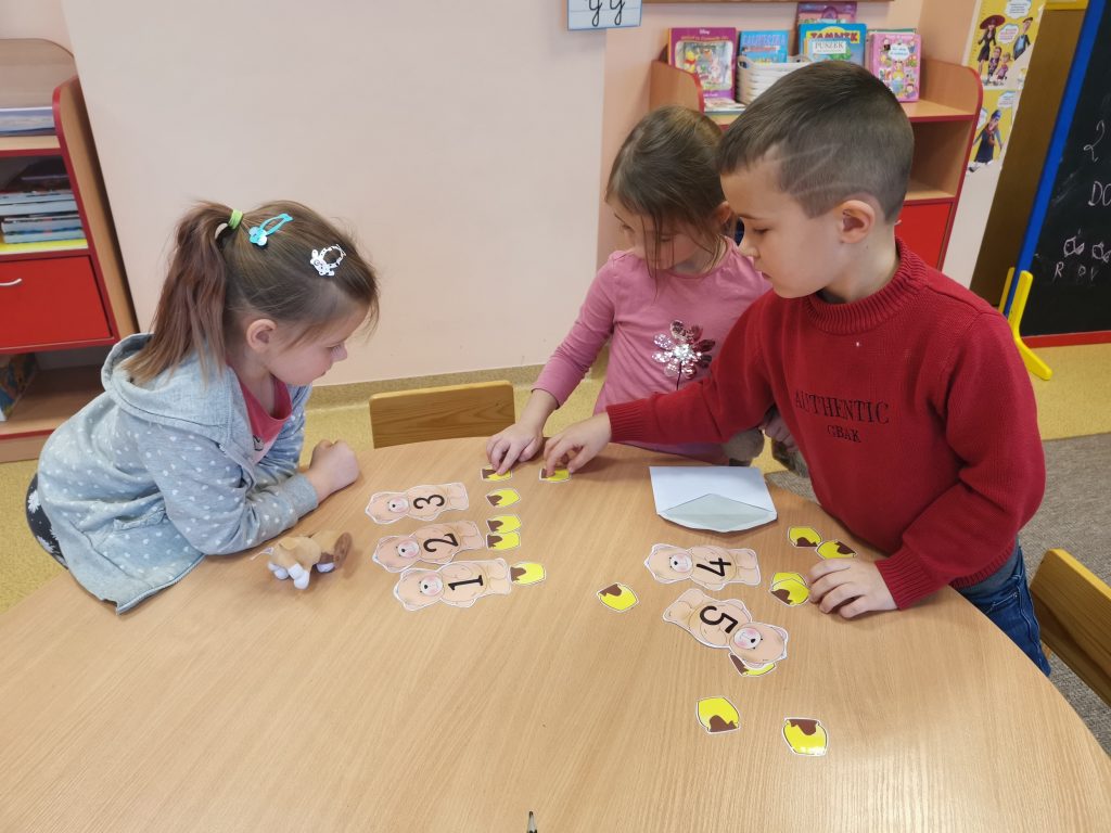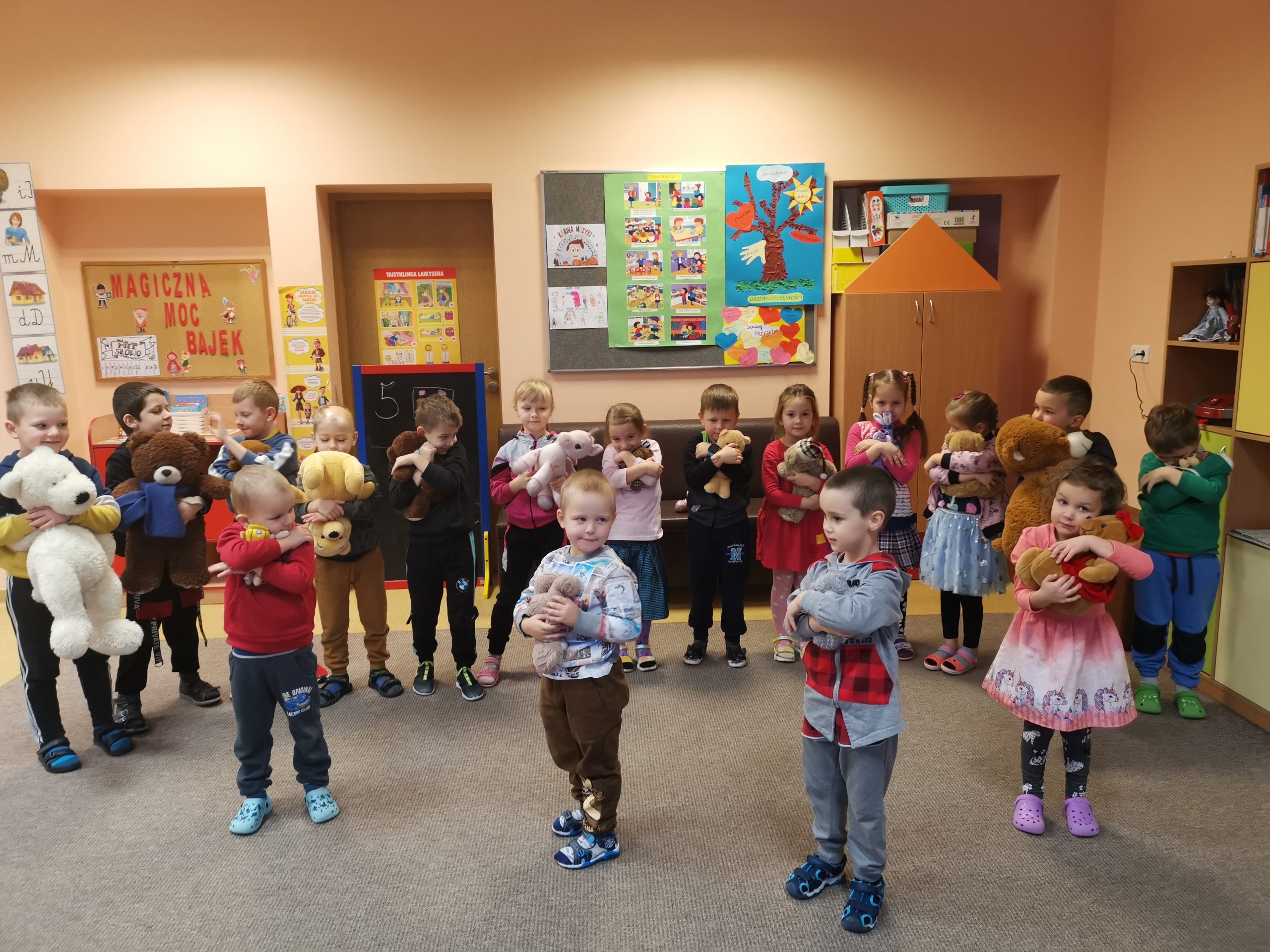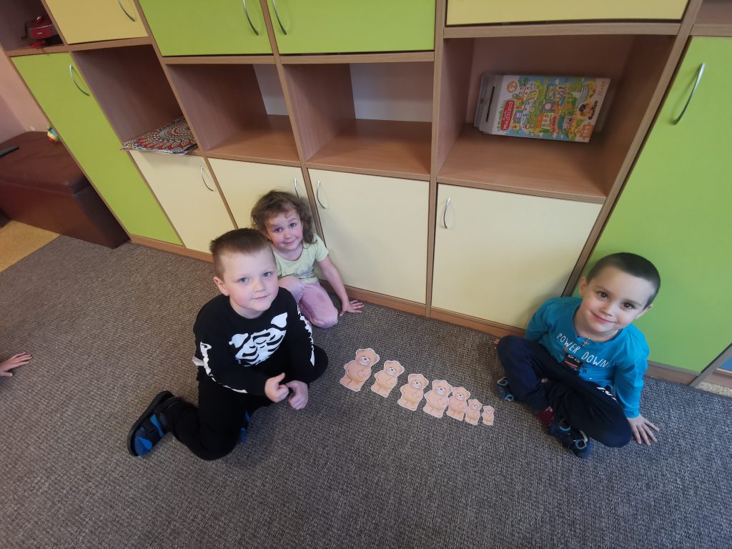 Diena prabėgo greitai. Todėl nusprendėme kitą dieną tęsti žaidimus su savo pliušiniais žaisliukais. Kitą dieną vaikų laukė staigmena: reikėjo surasti vokelius su meškiukų užduotimis. Vaikai puikiai pasirodė: susirado vokus ir atliko visas užduotis.