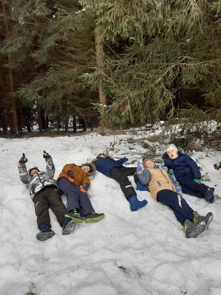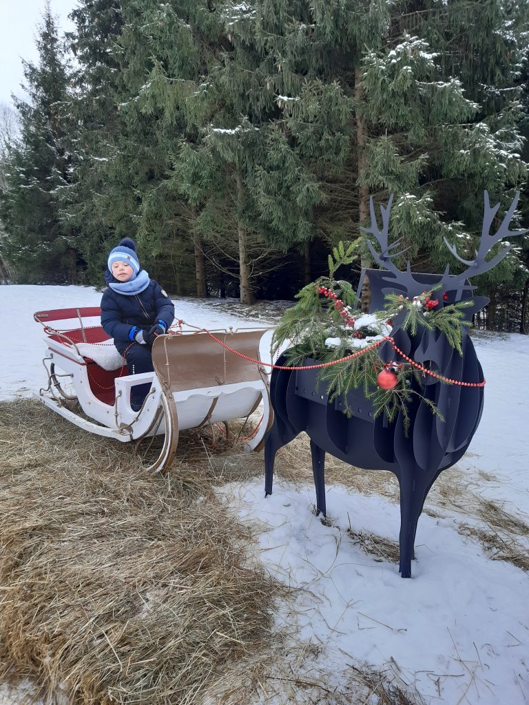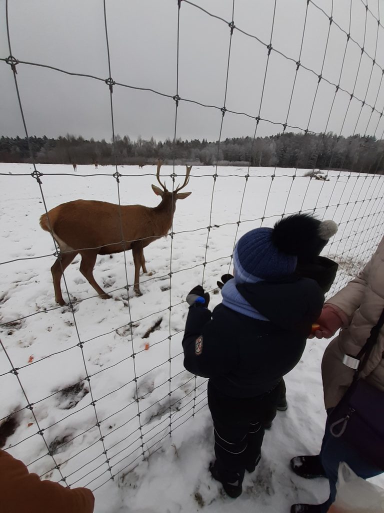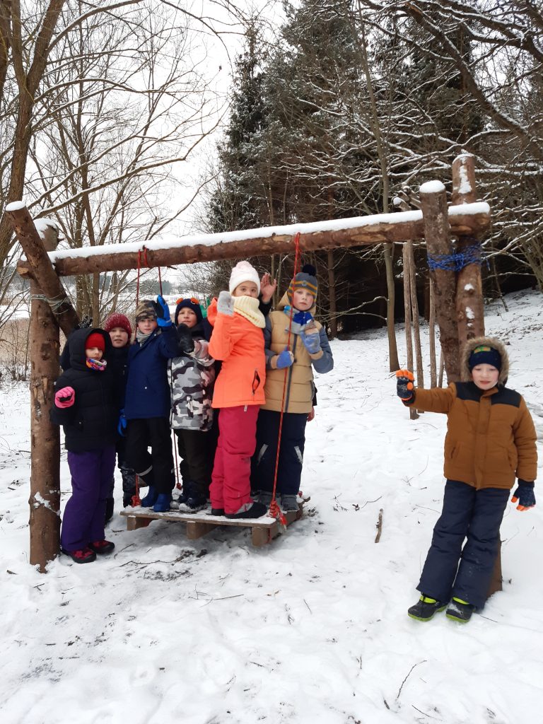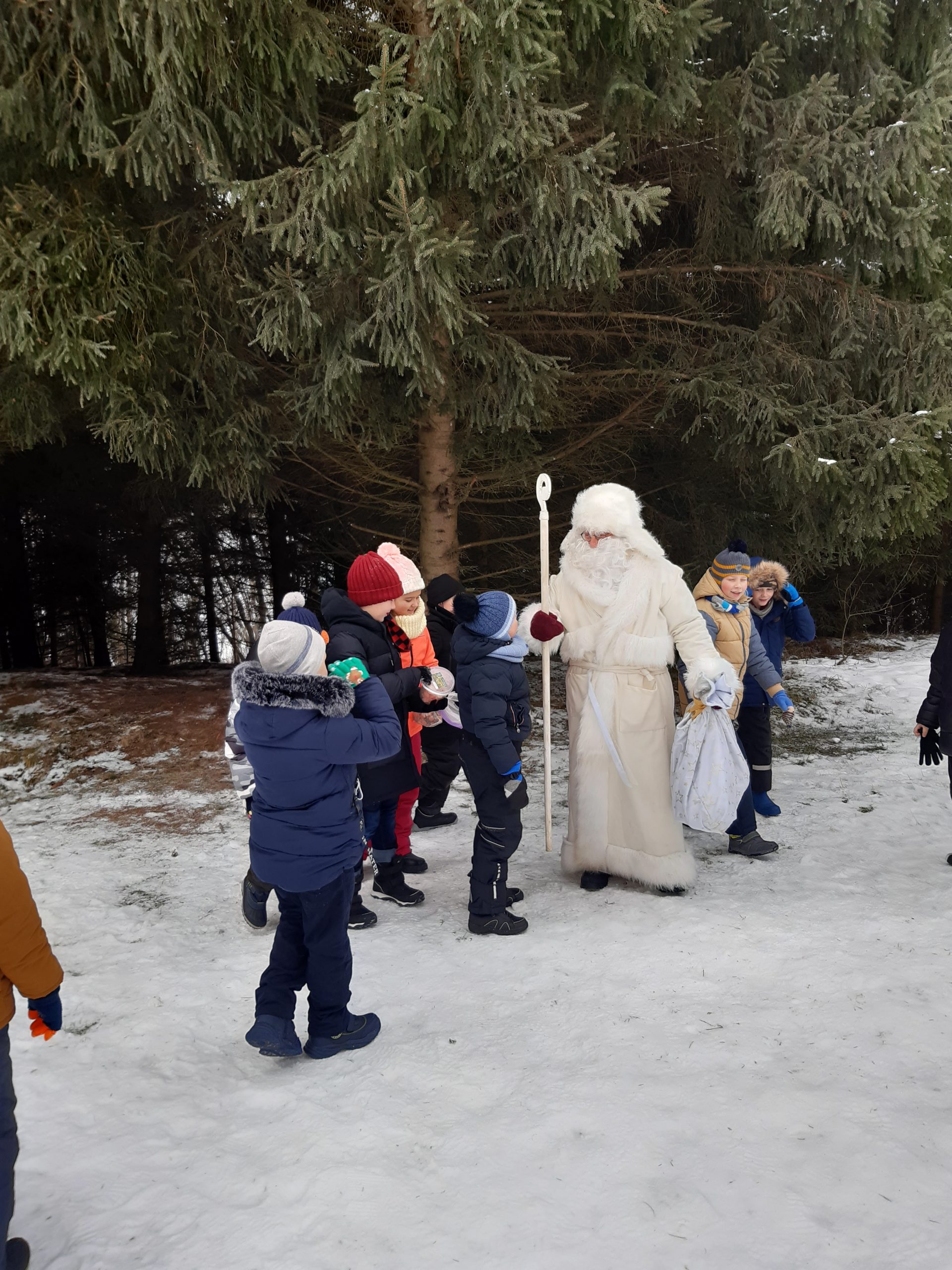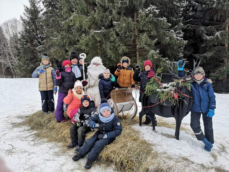 Gruodžio 9 dieną 2 klasės mokiniai kartu su auklėtoja A.Žygis ir padejėja I.Bogdanovičienė nuvykome į apsnigtą mišką,kuriame gyvena ne tik elniai,bet ir Kalėdų senelis.