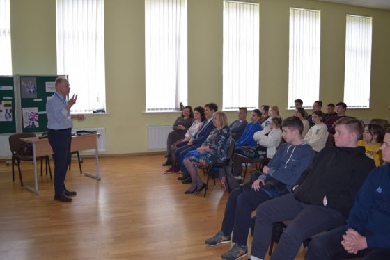 Dr.E.Šabanovič yra mūsų gimnazijoje vykdomo tarptautinio Erasmus+ projekto „Darbas tai sėkmė, laikas tai pinigai; grįžimas prie šaknų” („Work is success, time is money; return to the roots”) veikėjas. Pirmoje susitikimo srityje dr. Eldar Šabanovič papasakojo apie savo tapsmo mokslininku etapus. Paskaitos metu buvo naudojamos informatyvios skaidrės apie pirmuosius nepriklausomos Lietuvos dirbtinius Žemės palydovus. Moksleiviai sužinojo, kas sudaro palydovą, iš kur leidžiami lietuviški palydovai, kaip palydovas skrenda, kaip bendraujama su palydovu. Mokslų daktaras atskleidė drono dėžės veikimo principus, dronų naudojimą kuriant 3D žemėlapius bei organizuojant dronų šviesos pasirodymus. Lektorius pakomentavo dirbtinio intelekto naudojimą segmentavime, objektų aptikime ir sekime, veiksmo atpažinime. Moksleiviams buvo smalsu sužinoti apie autonominius automobilius, kliūčių vengimą, kelio paviršiaus tipo ir būklės atpažinimą, naudojant dirbtinį intelektą. Iš dr. Eldaro Šabanovičiaus paskaitos mokiniai tap pat sužinojo apie dirbtinio intelekto plėtrą Lietuvoje.
