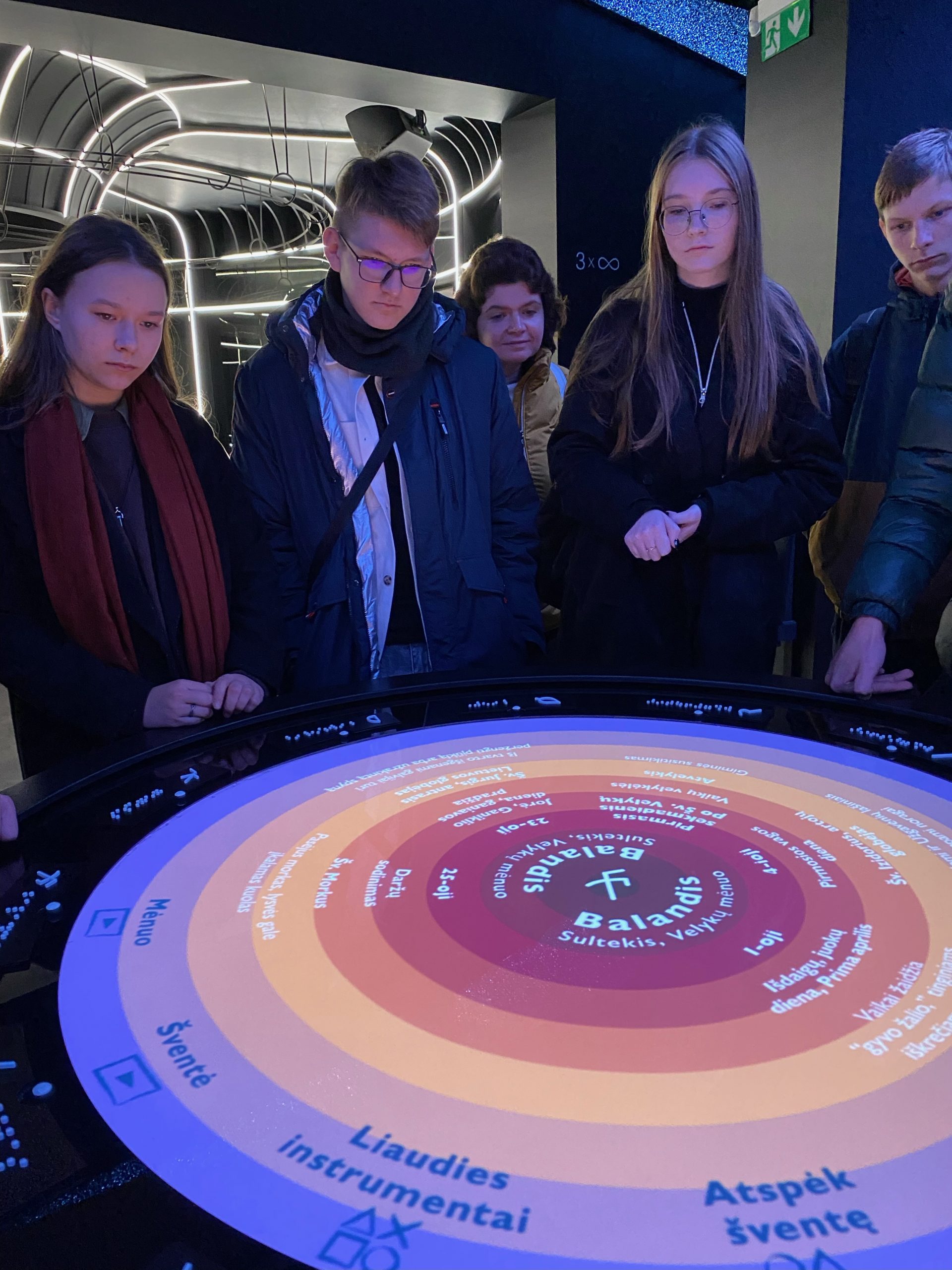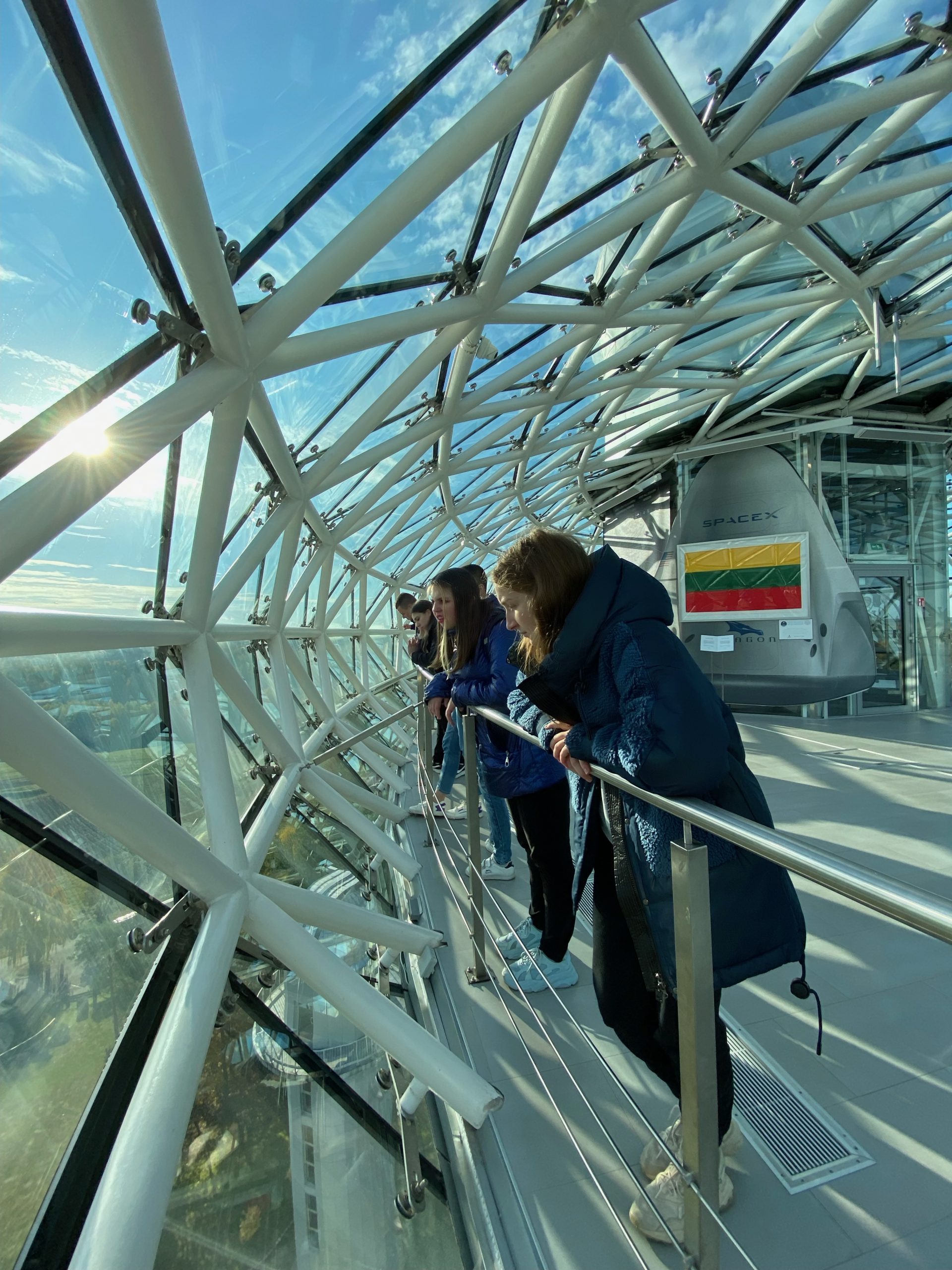 Ekskursijos metu mokiniai pakilo į 32 metrų aukštyje esančią apžvalgos aikštelę, nuo kurios atsiveria nuostabi Labanoro girios panorama bei įspūdingi ežerai. Profesionalus muziejaus gidas padėjo moksleiviams geriau pažinti Lietuvos etnokosmologijos muziejaus unikalumą ir kosminio pasaulio įvairovę. Rekomenduojame ir mažiems, ir dideliems gimnazijos moksleiviams apsilankyti Molėtų astronomijos observatorijoje ir Etnokosmologijos muziejuje!