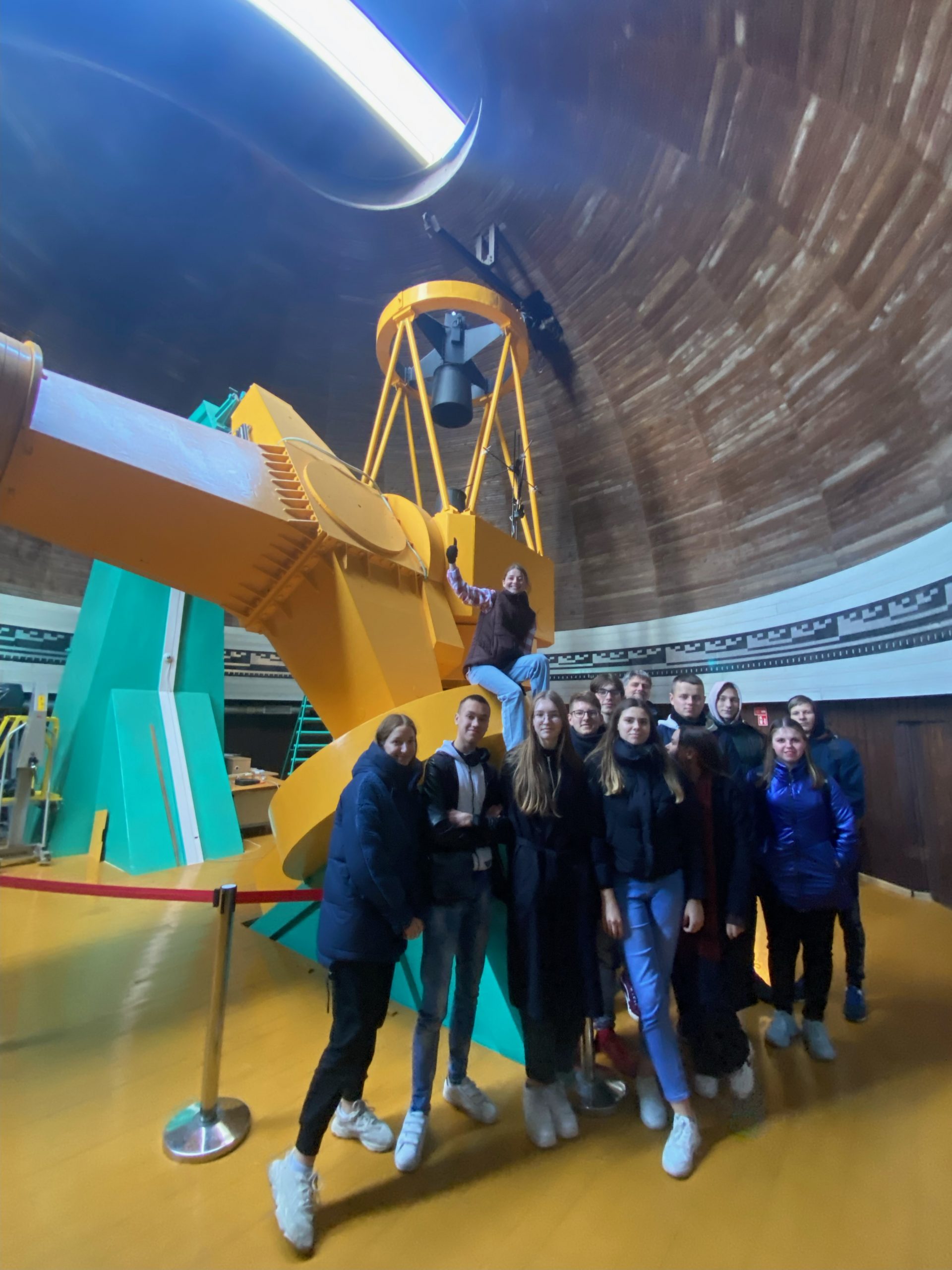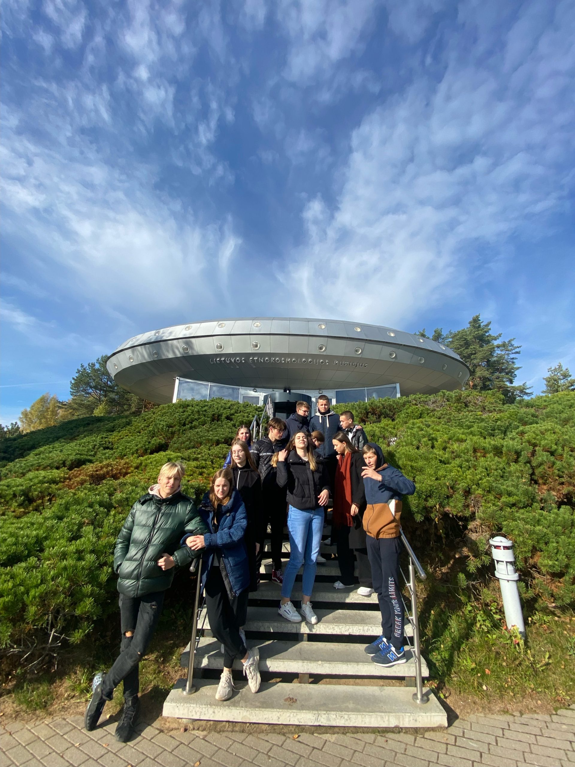 Spalio 14 d. III klasės mokiniai kartu su informatikos mokytoja Alina Makovska apsilankė Molėtų astronomijos observatorijoje ir Etnokosmologijos muziejuje. Observatorijoje mes klausėmės žymaus astronomo Sauliaus Lovčiko paskaitos. Mokiniai turėjo galimybę susipažinti su Lietuvos ir pasaulio astronomijos naujienomis, apžiūrėti teleskopus, pamatyti nuostabaus grožio spalvotomis planetų, žvaigždžių, ūkų, spiečių, galaktikų nuotraukomis. Etnokosmologijos muziejuje mokiniai pamatė pirmąją šalies istorijoje Lietuvos vėliavą, kuri skrido kosmose tris dienas daugiau nei 585 km aukštyje aplink Žemę. Sužinojo apie žmogaus ir žmonijos santykį su Kosminiu pasauliu. Didžiulio mokinių dėmesio sulaukė pirmųjų nepriklausomos Lietuvos nanopalydovų maketai, kurie sukurti Lietuvos kosmoso įmonėje „NanoAvionics“. Mums buvo malonu, kadangi nanopalydovo „LituanicaSAT-2“ programuotojas Eldar Šabanovič yra mūsų gimnazijos tarptautinio „Etrasmus+“projekto „Work is success, time is money; return to the roots” dalyvis. Praėjusiais mokslo metais mūsų gimnazijoje jis skaitė paskaitą „Pirmieji nepriklausomos Lietuvos palydovai, dronai ir dirbtinis intelektas.“