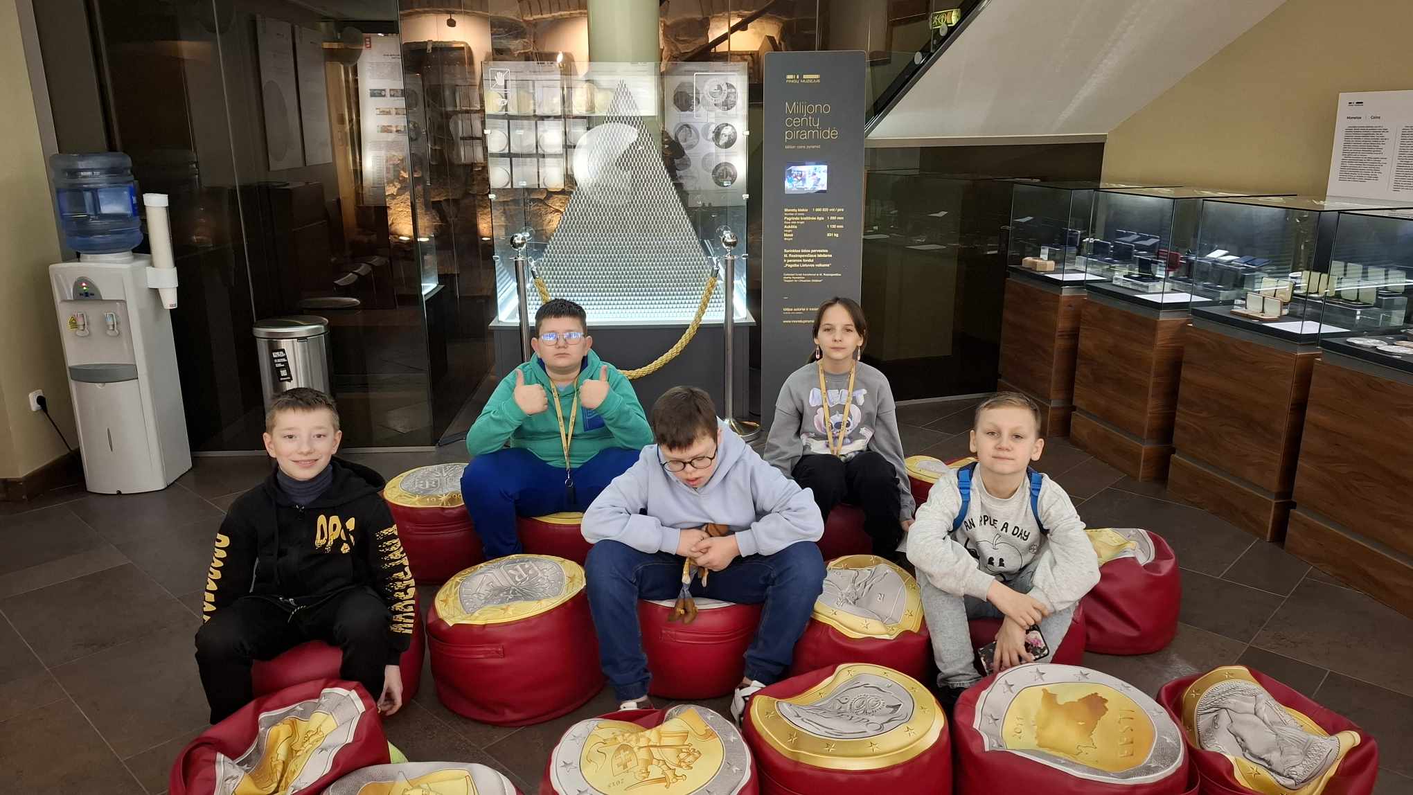 Balandžio 19 d. 4 klasės mokiniai su auklėtoja A. Žygis ir mokytojos padėjėja I. Bogdanovičienė nuvykome į edukacinį užsiėmimą Pinigų muziejuje Vilniuje.