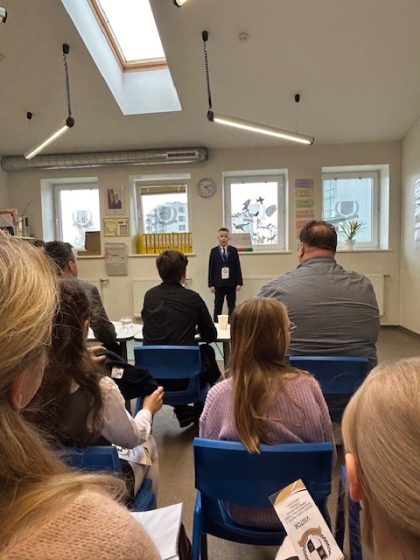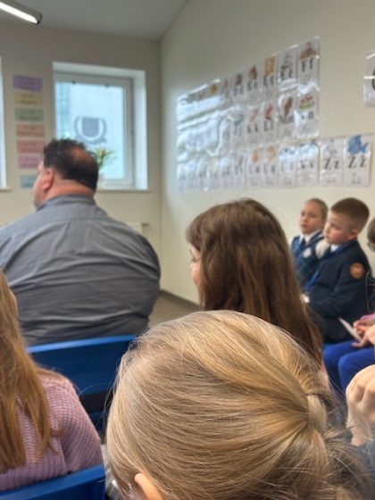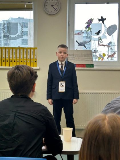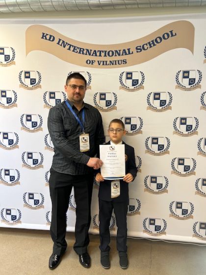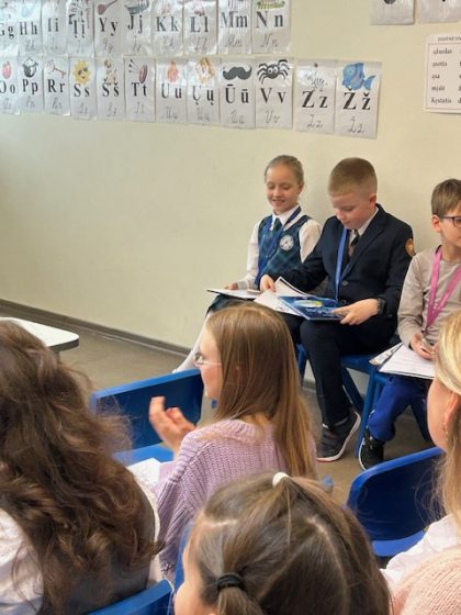 „2024 m. balandžio 24 d. dalyvavome meninio poezijos deklamavimo konkurse. Mokiniai D. Prokopovič ir D. Gucevič anglų k. prisistatė su eilėraščiais „Favourite places” ir „What is a tree?” (aut. Gilllian Craig).