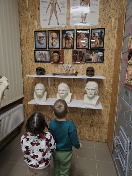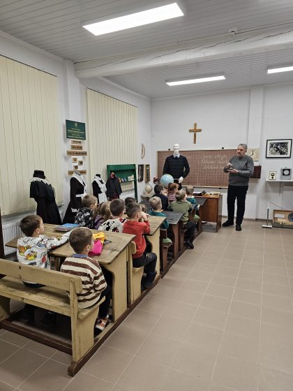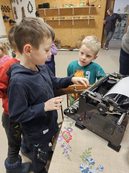 Po kūrybinių dirbtuvių atėjo laikas apžiūrėti muziejų. Aplankėme senovinę klasę, kurioje turėjome galymybę pasėdėti suoluose, tokiuose kaip tie, kuriuose mokėsi mūsų seneliai ir močiutės. Apžiūrėjome įvairius kabinetus su įdomiomis ekspozicijomis. Vaikai turėjo galimybę spausdinti rašomąja mašinėle, žiūrėti į uodą per mikroskopą (kurį ne kiekvienam pavyko iškart pamatyti), groti pianinu ir apžiūrėti lėlių parodą iš pasakų.