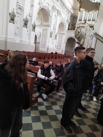 Kovo 12 d. 7 klasės mokiniai dalyvavo unikalioje integruotoje geografijos ir matematikos pamokoje, kuri vyko Istorinėje Šv. apaštalų Petro ir Pauliaus bažnyčioje Vilniuje. Pamoka sujungė matematikos, geografijos, istorijos ir architektūros elementus. Mokiniai gilinosi į geometrijos klausimus, tyrinėdami bažnyčios interjero formas, proporcijas ir architektūrinių elementų erdvinį išdėstymą, taip pat susipažino su šio nuostabaus barokinio objekto istorija ir menu. Jie analizavo simetriją, kolonų išdėstymą, skliautus, vitražus ir jų kampinį išdėstymą, atrandant, kaip matematika susijusi su istorija ir menu.