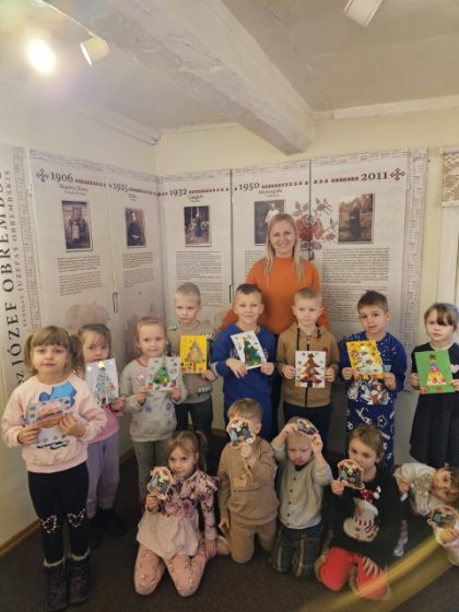 Po kunigo prelato Juzefo Obrembskio muziejaus apžiūrėjimo, priešmokyklinukai nekantriai ėmėsi darbo. Vaikai sukūrė nuostabius kalėdinius sveikinimų atvirukus – kiekvienas buvo gražesnis vienas už kitą. Ikimokyklinukai taip pat papuošė eglutės formos pakabukus, kuriais bus papuošta eglutė muziejuje.