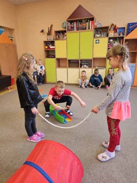 Taip pat vyko komandinės veiklos, kurios mokė bendradarbiauti ir suteikė priešmokyklinukams ne tik naujų iššūkių, bet ir daug džiaugsmo.
