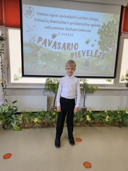 Balandžio 14 dieną priešmokyklinukas David Žigo dalyvavo Vilniaus rajono švetimo įstaigų, teikiančių ikimokyklinį ir priešmokyklinį ugdymą, meninio skaitymo konkurse „Pavasario pievelėje”, kuris vyko Nemenčinės lopšelyje-darželyje „100 spalvų“. David deklamavo Dorotos Gellner eilėraštį „Piłka“. Už savo pasirodymą buvo apdovanotas padėka už dalyvavimą.