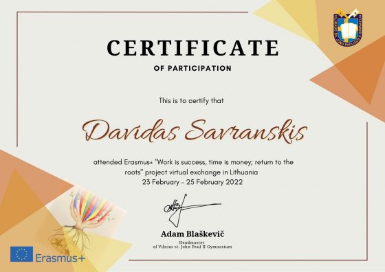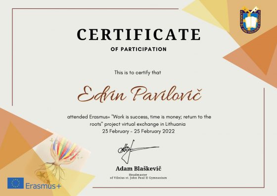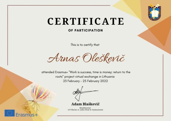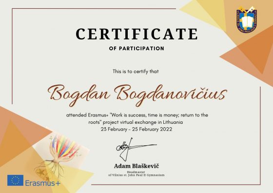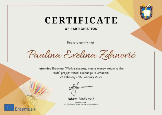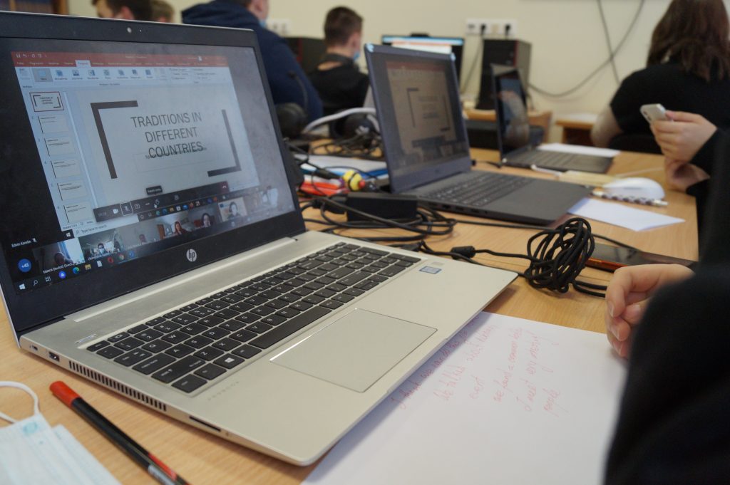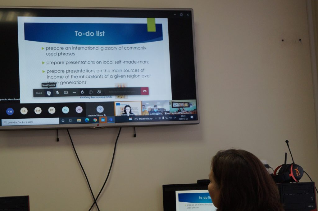 Today at 9.00a.m. a virtual meeting in Lithuania of the Erasmus + project „Work is success, time is money; return to the roots” started. Finally, we have got to know each other and met students from Lithuania, Poland, Romania and France. It was a big technical challenge for us. We were working in the groups, have known a lot of traditions in different countries and have had fun being together. We are glad that the first day was amazing. See you tomorrow! Gimnazjum im. św. Jana Pawła II w Wilnie Szkoła Podstawowa im. Konstytucji 3 Maja w Śmiglu Scoala Partestii de Sus Collège Pierre ET Marie Curie