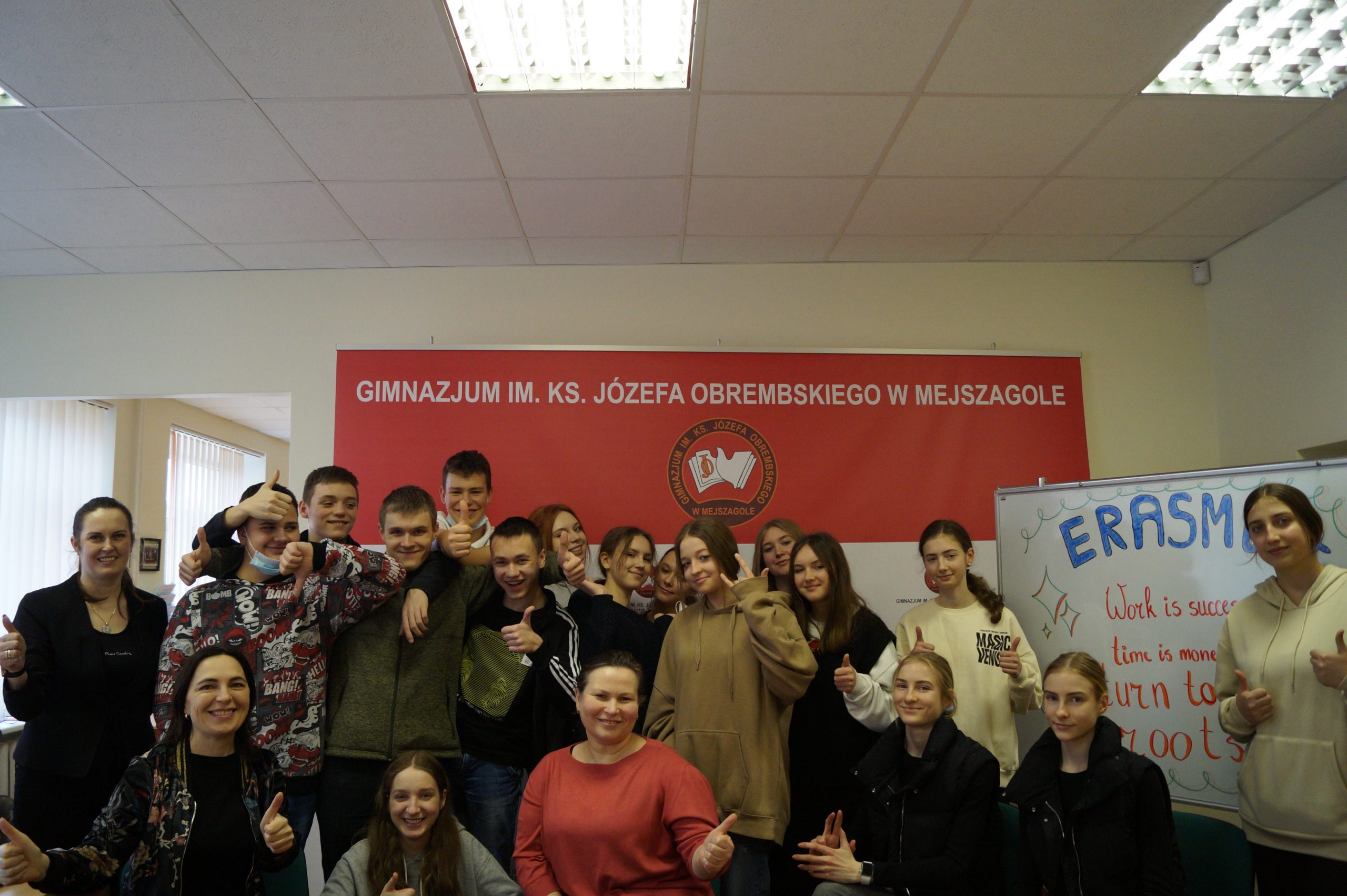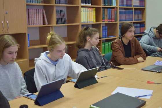 Mūsų gimnazijoje yra vykdomas tarptautinis Erasmus+ projektas „Darbas tai sėkmė, laikas tai pinigai; grįžimas prie šaknų” („Work is success, time is money; return to the roots”), kuris jungia 5 mokyklas iš 4 šalių (Lenkija, Lietuva, Rumunija, Prancūzija). Vykdant minėtą projektą praėjusį penktadienį, vasario 3 d., 7-11 klasių mokinių grupė dalyvavo susitikime su 2 žymiais Lietuvos mokslininkais: su Renata Miknevičiūte, astrofizike iš Fizikos ir technologiijos centro