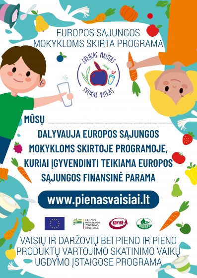 Mokykla dalyvauja Vaisių ir daržovių bei pieno ir pieno produktų vartojimo skatinimo vaikų ugdymo įstaigose programoje: