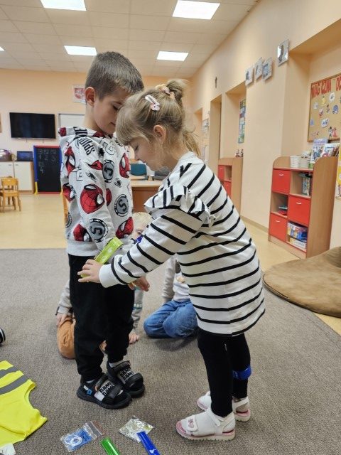 Trzeci czwartek października obchodzony jest na Litwie Dzień Odblasków, którego celem jest kształtowanie właściwych nawyków związanych z bezpiecznym poruszaniem się po drodze oraz uświadomienie roli elementów odblaskowych. W okresie jesienno-zimowym szybciej zapada zmrok, a pogoda pogarsza widoczność. To sprawia, że odblaski są szczególnie ważne. Przedszkolacy już we wrześniu uczestniczyły w różnorodnych zabawach i zajęciach podczas których poznały zasady bezpiecznego przechodzenia przez ulicę, zachowania się w pobliżu jezdni. Dzisiaj natomiast zdobyły wiedzę o znaczeniu noszenia kamizelek i opasek odblaskowych. Dzieci przekonały się, że dzięki odblaskom są lepiej widoczni na drodze. Na zakończenie spotkania każde dziecko otrzymało w prezencie odblask i obiecało, że będzie go nosić codziennie.