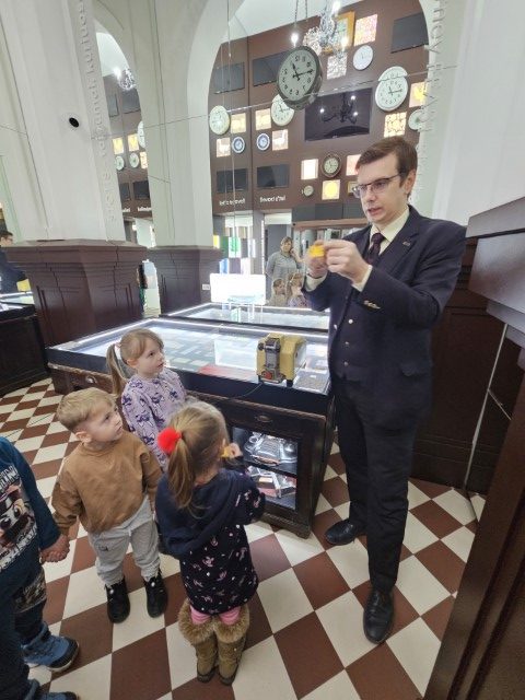 9 grudnia grupa przygotowawcza udała się do Muzeum Kolejnictwa w Wilnie na zajęcia edukacyjne dla przedszkolaków „Pociąg”. W muzeum „podróżowaliśmy pociągiem” po torach, przemieszczając się między stacjami przygotowanymi na wystawie i poznając różnorodne aspekty pracy na kolei. Dowiedzieliśmy się, co przewożą pociągi, gdzie i jak kupić bilet, kim jest „zając” w pociągu, jak wyglądają tory i z czego są zrobione, a także jakie znaczenie mają żółta i czerwona chorągiewka. Uczyliśmy się również, jak bezpiecznie przechodzić przez tory kolejowe. Było mnóstwo pytań, a na każde z nich podczas zajęć znaleźliśmy odpowiedź.