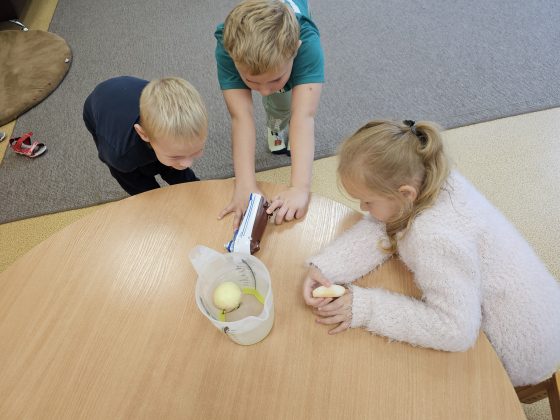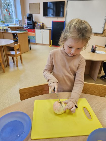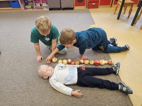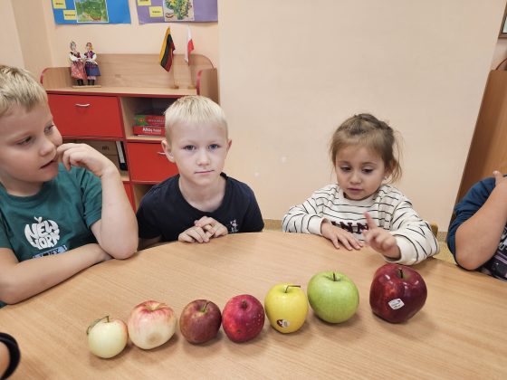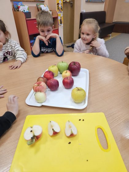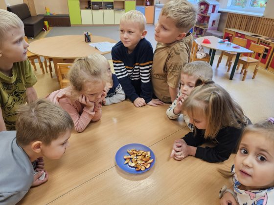 Visos dienos veiklos – edukacinės, fizinės ir matematinės – žinoma, buvo obuolių tematika. Netruko degustacijos: džiovinti ir kepti obuoliai pasirodė esą tikras delikatesas.